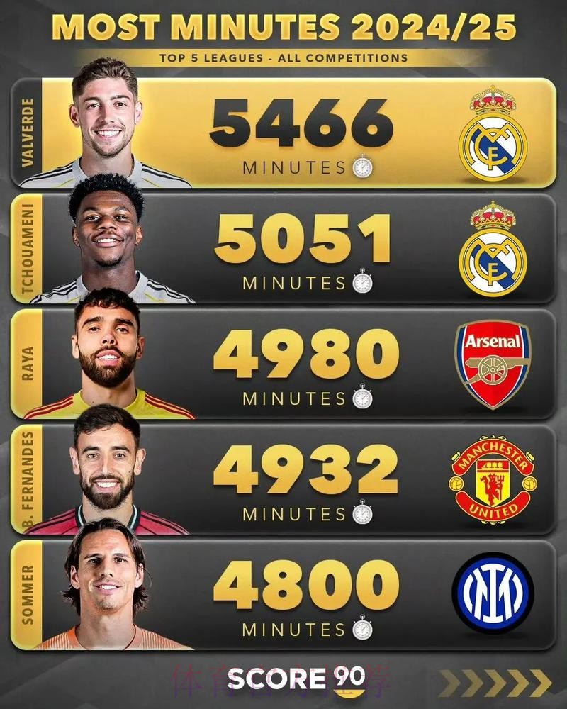 上赛季出场时间排名:巴尔韦德居首,B费前四